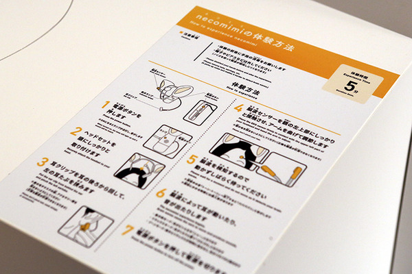 ニューロスカイの「necomimi」の体験コーナー。ネコミミ型のカチューシャに内蔵されたセンサーで脳波を読み取る
