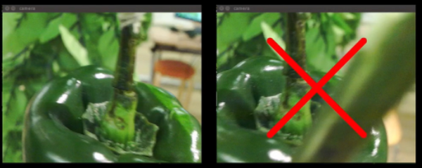 従来の収穫ハンドに搭載しているカメラに加え、ロボット底部に新たに広範囲の探索専用カメラを搭載。株の低い領域を探索専用カメラが、高い領域を収穫ハンドカメラが探索することにより、探索効率及び収穫速度を大幅に向上した。また、AIがピーマンの手前に枝を認識した場合に収穫アプローチを中断し、枝切りを防止する機能を実装した。