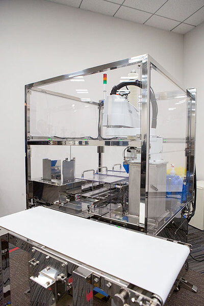 既存の製造工程ラインのスピードに対応させて、スピーディーに惣菜を生産することが可能。ポテトサラダであれば、惣菜盛付ロボット1台で1人分の作業を行うことができる。同社のロボットは一般的な惣菜製造工場の1ラインに4台セットすることができ、現状は1時間で1000食分の生産を行う事が可能。
