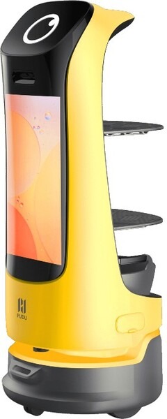 優れた障害物回避能力や移動能力を有する最新式の広告ディスプレイ付配膳ロボットです。
