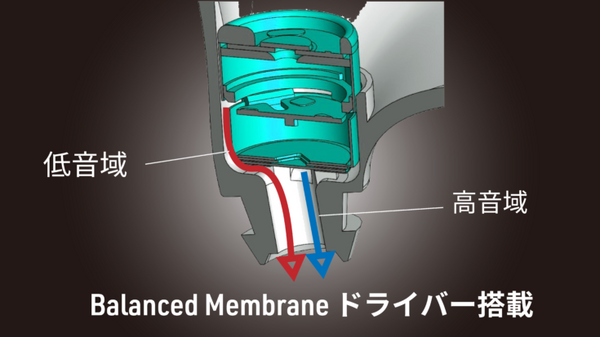 ハイレゾコーデックの音を再生するために、新たに Balanced Membrane (バランスド・メンブレン) 6㎜ ドライバーを搭載した。同軸上に低域と高域のドライバーを配置し一体型のドライバーにすることで、安定的にサウンドをダイレクトに耳に届けることを可能とし、クリアで伸びやかな高音と深みと迫力のある低音の両立とナチュラルなサウンドの再現を実現する。