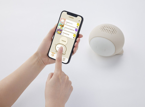 『coemo』はパパやママそっくりのコエをAIがつくる読み聞かせスピーカー。最先端のAI音声合成技術「コエステーション」を活用し、実在の人物の声とそっくりな合成音声=コエでたくさんのおはなしを読み聞かせてくれる。プロのナレーターの感情表現や抑揚を再現することで、まるでパパやママがお話しているような自然な読み聞かせを実現している。また、それぞれのおはなしに合わせた効果音やBGMを合わせることで臨場感ある読み聞かせを楽しむことができる。