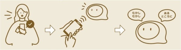 「coemoアプリ」で好きなコンテンツを3つ選んで本体へ送信。本体操作だけで『coemo』がおはなしを読んでくれる。