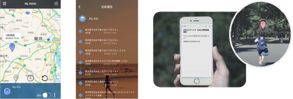 実証に向けたトライアルでは子どもがオリジナルデザインのなくし物防止&見守りタグ「bible」を持って外出。小田急多摩線沿線に設置する受信機での検知を通じて、専用アプリ「biblle」もしくは、メールにて子どもの現在地や行動履歴を確認できる。