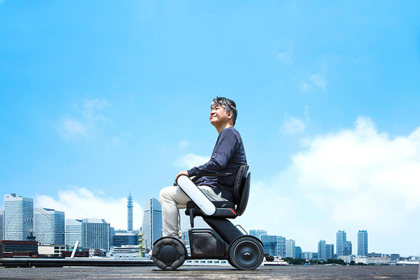 「WHILL Model C2」は高いデザイン性と、5cmの段差乗り越え、回転半径76cmの小回り能力、リアサスペンションを採用した滑らかな乗り心地などを特長とした近距離用のモビリティ。