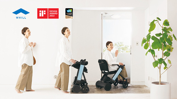 「WHILL Model F」は、高いデザイン性や操作性はそのままに、軽量化を実現した折りたためるタイプのモビリティ。顧客の身体の状況や移動ニーズに合わせて選ぶことができる。CES2022では日本企業として唯一、最優秀賞である「Best of Innovation Award」、を受賞した。