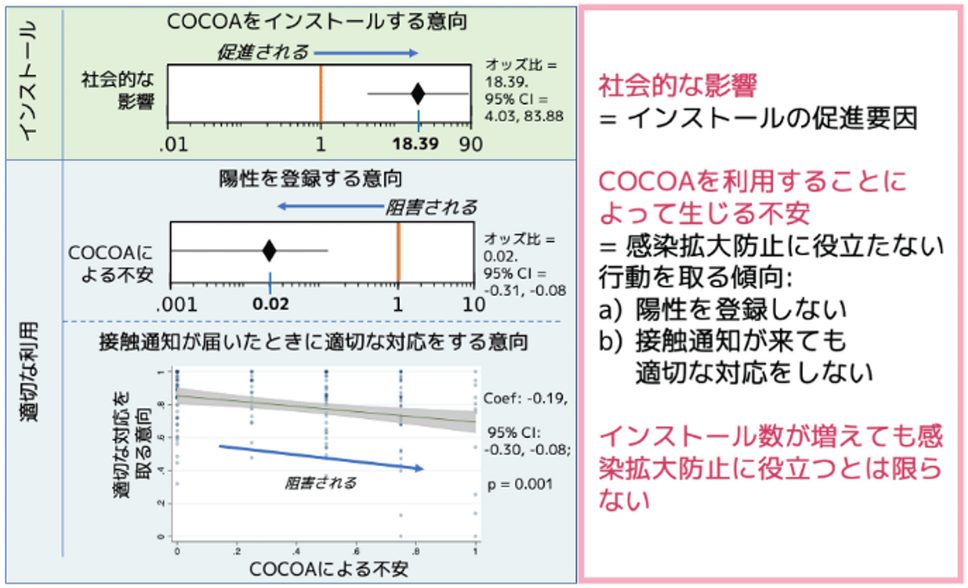 新型コロナウイルス接触確認アプリ「COCOA」は感染症拡大防止対策の一つとして期待されている。利用者への社会的影響や利用者の行動、意向などを調査した結果、アプリの普及に努めるだけでなく、人々の利用に対する不安解消の重要性が明らかになった。