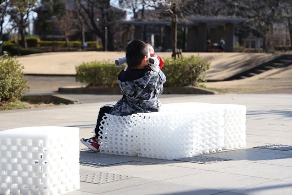 物質の構造を意図的に変えることで、もともと持っていなかった性質を持たせた物質のことを「メタマテリアル」と言う。身近な遊具やイスの固さや触感を自由に選びたい、という空想を実現する触感メタマテリアルで作られたイスで、好みのイスの触感を体感できる。