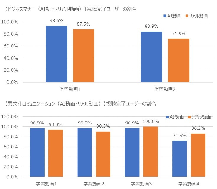 AIで生成した講師動画と人間による講師動画の受講状況に大きな差はなかった
