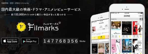 Filmarks(フィルマークス)は「いい映画と出会おう。」をコンセプトにした国内最大級の映画レビューサービスだ。映画レビューをチェック・投稿できる機能をベースに「映画探し」「観たい映画のメモ・備忘録」「鑑賞記録ノート」「映画の感想や情報をシェアして楽しむコミュニケーションツール」として無料で利用できる。