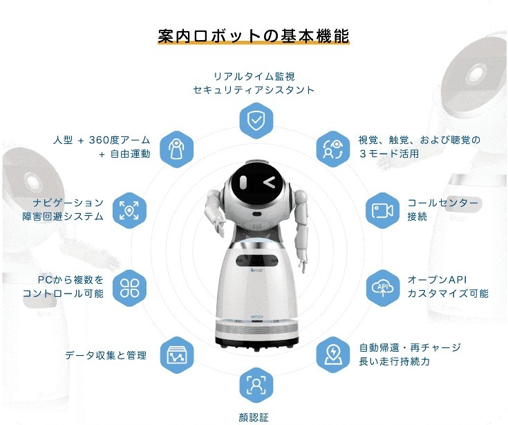 同ロボットは、新型コロナ対策としての各種サービスの非接触化、DX化、省人化、多言語対応が可能なことより、日本においても企業のショールーム、美術館、博物館、水族館、デパート等で採用され始めてる。