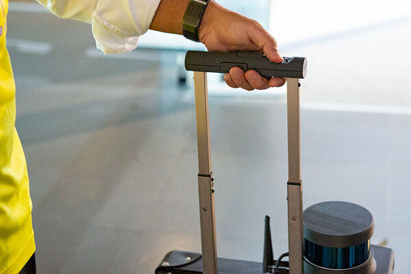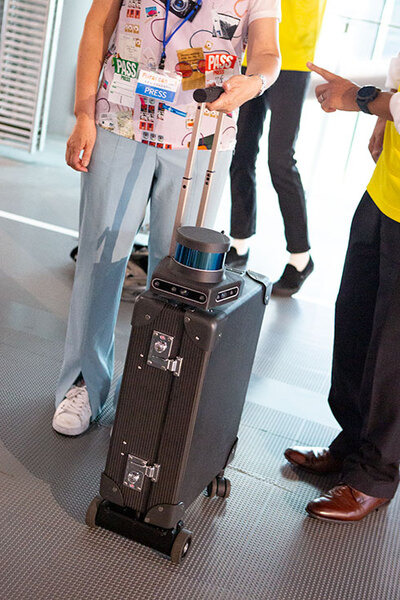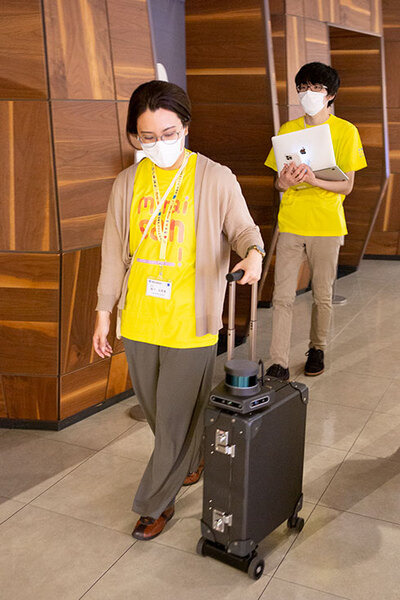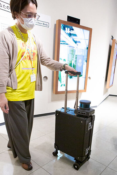 簡単に表現すると、「AIスーツケース」は、視覚障害の方の目の代わりとなって先導してくれる自律移動ロボットだ。「AIスーツケース」がICT技術を活用して周囲を確認し、人や障害物、段差などを認識しながら、自律走行して安全に目的地まで誘導したり、館内を案内する機能等を持つ。日本科学未来館館長で工学博士の浅川智恵子氏が実践活用されていることでも知られている(中学生のときに失明)。