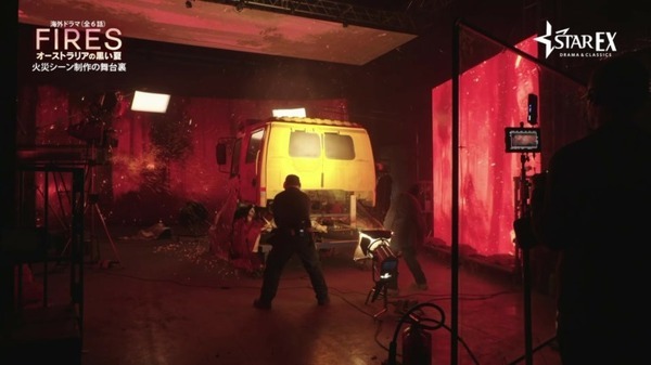 今回解禁となったのは、第一話のクライマックスで若い消防団員2名が消防車の中に取り残され、火に囲まれてしまうという緊迫感のあるシーンのメイキング映像。