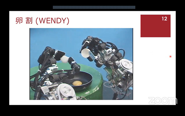 菅野氏は、爪がある人間の指のような構造を持たせたロボット「WENDY」によるたまご割りを紹介した。通常の点接触の指のロボットでは、卵の殻を壊すことはできても、巧みに割ることはできないという。菅野氏は「いかに優れた制御をしてても、まずメカが良くなければ、ロボットの機能はできるできないのレベルで大きく変わってくる」と述べた。これがロボットにおいてハードウェアが重要である理由だ。