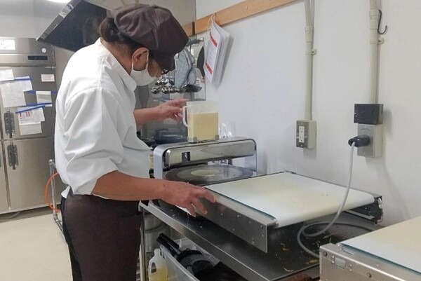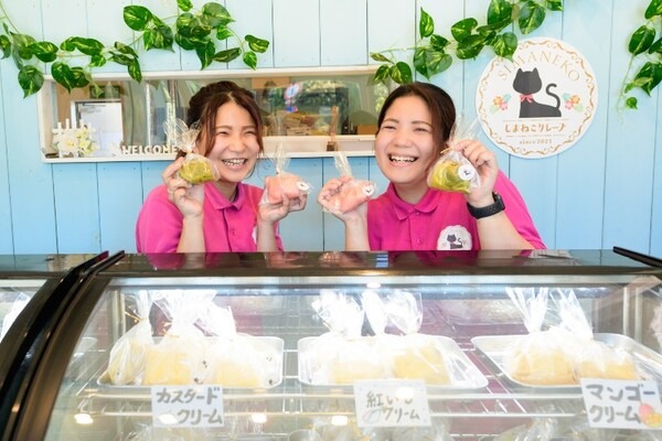 同社では就労継続支援B型事業所として、ネコと触れ合える「しまねこカフェ」を運営してきたが、コロナ禍では来店型の店舗運営が難しく、2021年5月にテイクアウト専門のクレープ屋に切り替えたが、クレープ生地を薄くきれいに焼き上げる作業は難しく、1日の生産数に上限ができてしまい、立ち仕事のため作業負担も大きいことも課題となっていた。業務用ロボットは大量生産向きかつ高額なため導入できないできたが、これらの問題を解決できる、クレープロボット「Q」を知り、2022年4月末に新店舗の糸満店へ2台を導入した。