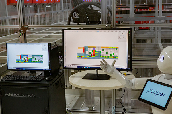 今回の発表で最も目玉となるソリューションは高密度自動倉庫システム「AutoStore(オートストア)」だ。強大な物流倉庫の商品保管棚を運用管理するシステムで、一連の物流業務の要となって、他のデバイスやシステムと連携するからだ。