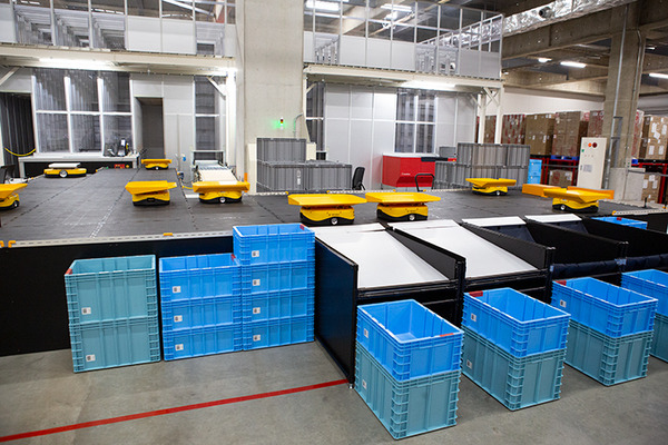 箱の管理や移動はキューブ上部のロボットが自律移動して作業を行う。
