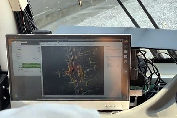 すすき野団地折返所から公道に出るまでは運転士が手動で運転したが、公道に出てからは自動運転でスタート。ハンドル、アクセル、ブレーキはシステムが制御してルートすべての区間を自動運転で走った