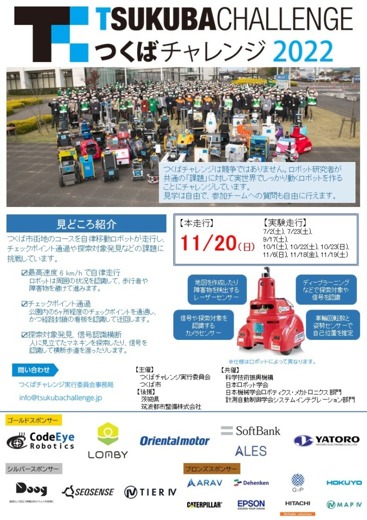 「つくばチャレンジ」は2007年から毎年実施している、つくば市内の市街地で移動ロボットが自律走行する技術チャレンジ。人々が普段使っている実環境(リアルワールド)における自律走行技術の進歩を目的とし、研究者と地域が協力して行う先端技術への挑戦と公開実験の場。様々な組織の研究者が移動ロボットを開発して実験を行い、その結果と経験を互いに共有することにより、技術レベルの向上を目指す。また、ロボット技術の現状を一般の人達に見てもらい、正しい理解を得ることも目的としている。
