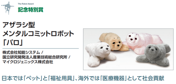 少子高齢化の影響により人手不足が深刻化するなか、認知症高齢者の増加は世界共通の課題でもある。2002年、世界で初めてロボット技術を活用してセラピー効果が認められたパロは、日本が誇れる介護ロボットであり、かつ国際的にも評価されている。また、製造はすべて日本国内で手作りされ、20年にわたり多くの国々で利用されていることも評価された。