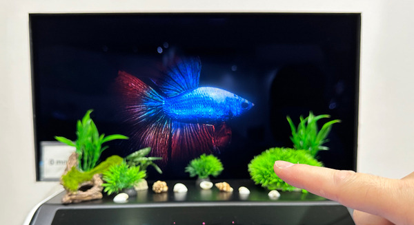 ひとつは立体の魚がヒラヒラと泳ぐデモで、指を近づけると魚が反応し、指を追うような動きをする。