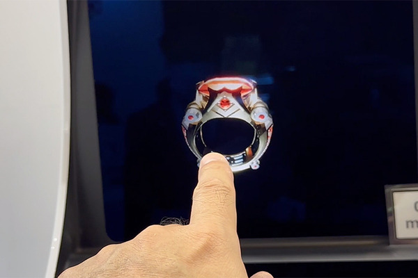 もうひとつは少し小型のディスプレイでリング(指輪)が浮かんでいる。商品ディスプレイなどを想定していて、指でピンチして拡大したり、クルクルと回して360度じっくり見たりすることができる。