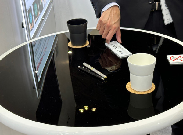 3つめはテーブル型。最初はたた、コーヒーカップが並んでおいてあるテーブルだと思っていたが、正面に立つと、コーヒーカップの間なキャラクターやメッセージが浮かび上がって見えた。