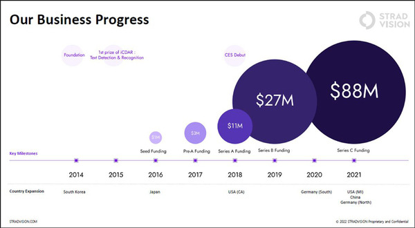 ストラドビジョンは2014年に5名でスタートした企業。2022年には95名の従業員に拡大、今では324名が働いている。資金到達はラウンドC、88ミリオンドル(US)に達している。