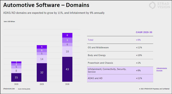 佐藤氏は「今後、自動車技術に対してソフトウェアの締める割合はますます大きくなり。スマート化していくと予測されている。GoogleやAmazon、Appleなど、IT企業が参入してきているのも周知の事実。ADASや自動運転、インフォテインメント、MaaSなど、Tier1メーカーの希望に合わせたSoCやプラットフォームを選択して頂き、それに対して私達がソフトウェア技術で支援していきたい」とし、「日本の自動車メーカーは自動運転に向けての技術革新がトーンダウンしているように感じるが、2030年までに20%の伸び率を達成していきたい」と続けた。