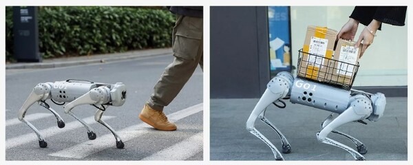 同ロボットはAI制御、高精度センサー搭載のスマートな犬型ペットロボットだ。ジョギングなどの動作にも連動できる運動量で、3kgまでの荷物補助も可能だ。アウトドアでトレーニング時に追従しながら障害物などを高精度で察知。また、最高速度は3.5m/秒と、自転車やスケートボードにも付き合える俊敏な動きとなっている。