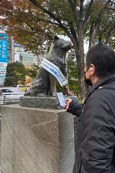 とか言っているうちに、渋谷のハチ公像の前に到着。新たなエピソード「目に見えぬ川の流れ」がイヤホンから流れ始めました。イケボの神様が登場しましたよ・・