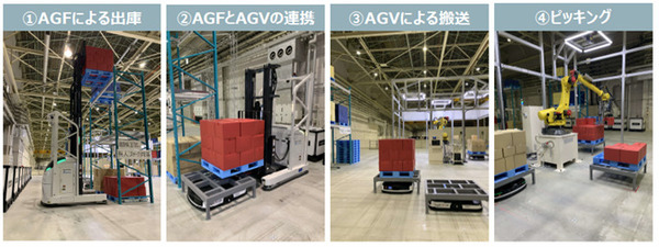 今回の共同実証は従来から使われているAGF、AGV、ピッキングロボットの3つの機械の連動を最適化する点が特長。キリンビバレッジの倉庫オペレーション条件下で「ΣSynX」による最適化制御の検証を実施し、安全に配慮した倉庫物流現場の課題解決を目指す。