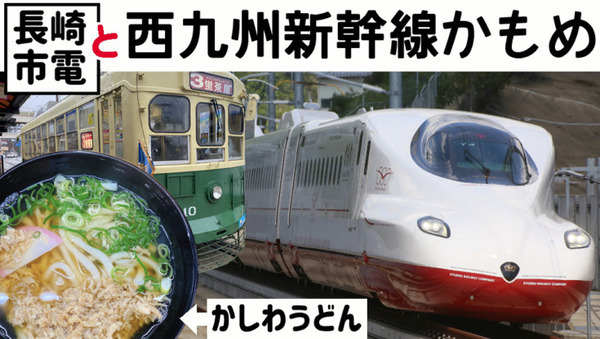 【長崎市電と西九州新幹線かもめ】ちゃんぽんじゃなくて、かしわうどん!?