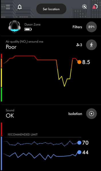 NO2は都市で最も多く見られるガス状汚染物質の一つで、都市交通、発電所、重工業などにおいて、燃焼の副産物として発生する。搭載されたセンサーがNO2濃度を監視し、MyDysonアプリで騒音レベルとともにリアルタイムでモニター。ダイソンの家庭用空気清浄機と同様、ユーザーの環境に関する実用的でわかりやすい情報を提供し、より健康的な生活習慣を提案することを目指す。
