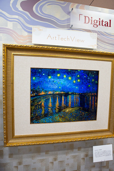 こちらは「ArtTechView」。パリ・オルセー美術館所蔵のモネ、ゴッホ、ルノアール、セザンヌなどの巨匠が描いた作品を、絵の具の盛り上がりや筆さばきなども含めて高精細に「ディスプレイ」で再現したもの。最初はディスプレイとは気づかず、自動的に作品の表示が切り替わって驚いた。