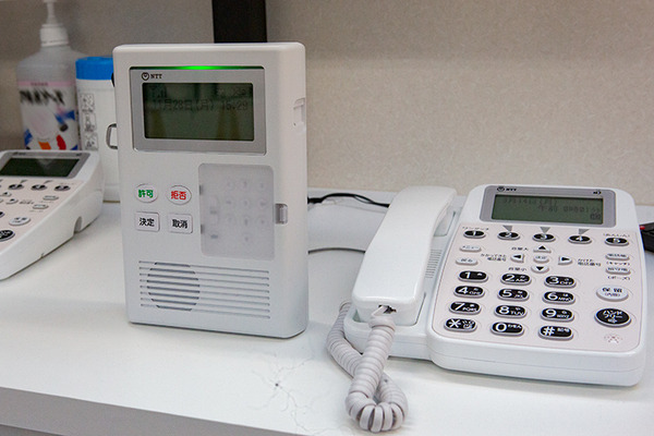 電話に設置するアダプタ。巧妙化する詐欺の手口に対応するためにクラウドやAIも定期的にアップデートしている
