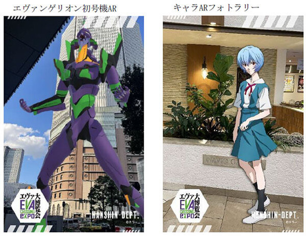 阪神梅田本店、ナビオ ダイニング、阪急三番街に設定した複数の体験スポットで、来場者がアプリ「XR City」をダウンロードしたスマートフォンをかざすと、「エヴァンゲリオン大博覧会」とのコラボAR(拡張現実)コンテンツを楽しむことができる。