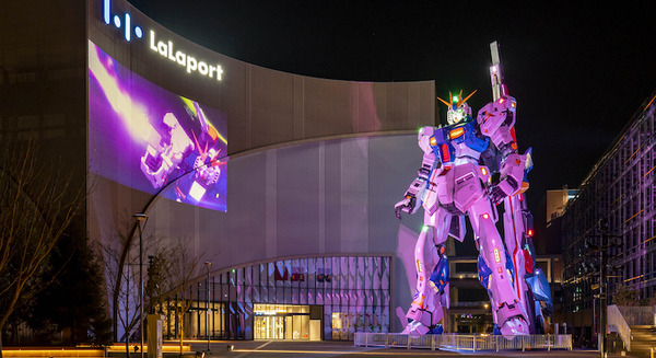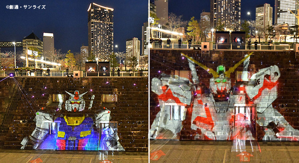 また同じく3月に「ガンダムポート横浜」企画で、「横浜ガンダムRX-78F00」とお台場「実物大ユニコーンガンダム」がプロジェクションマッピングで共演しました。