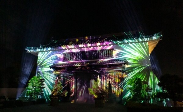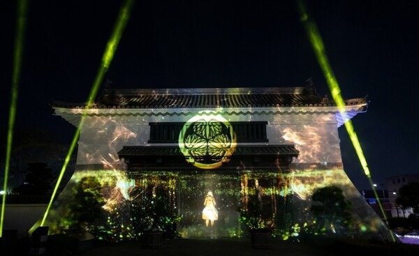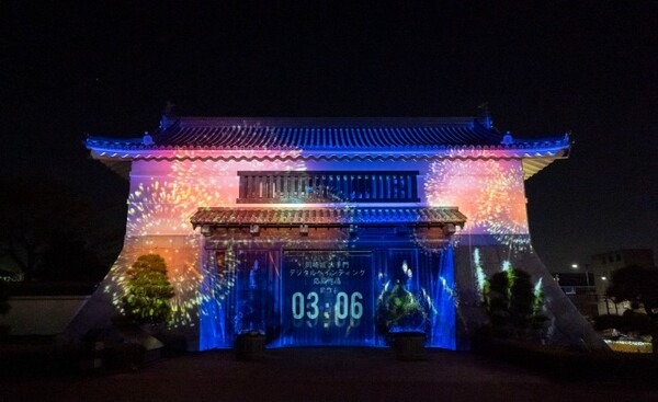 この催しは、徳川家康生誕の地・岡崎城の表玄関で幅16.4メートル・高さ11メートルの大手門に、岡崎市が誇る文化財などをモチーフとしたプロジェクションマッピング映像を投影したもので、「岡崎城大手門 デジタルペインティング募集」の応募作品の中から選出された作品もインターミッションコンテンツとして投影。