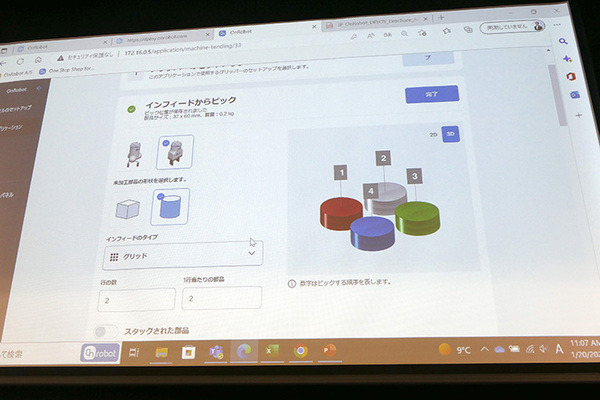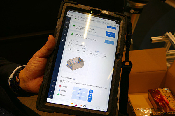 「たとえばパレタイジングのようなシンプルなアプリケーションを例にとると、設置して稼働できるまでに2週間くらいかかる。『D:PLOY』であれば非常にシンプルな作業フローですむ。オペレーターが入力する必要のある情報は4つの情報だけ。ボックスのサイズ 、重さ、パレットサイズ、パレットに何個のボックスを載せたいのか。これだけでいい。それに基づいてロボットの動きは15秒程度で自動計算される」という。