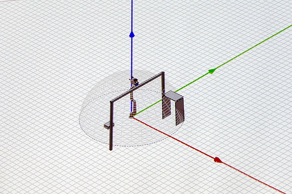 『D:PLOY』は、自動的にロボットセルのなかのハードウェアを検知してコンフィギュレーションする。各メーカーのロボットの3Dモデルも提供されており、作業領域を作って簡単にロボットが避けるべき領域も定義できる。