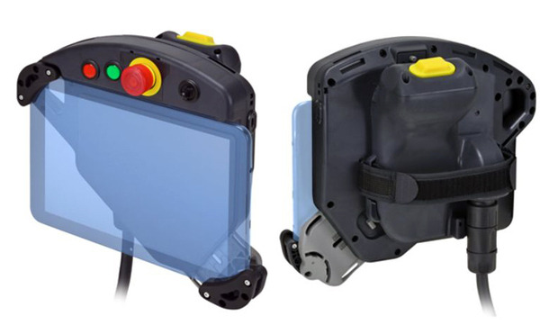産業用ロボットのティーチングには、各社専用デバイスの「ティーチングペンダント」が多く利用されてきた。そして「ティーチングペンダント」には、人とロボットが接近して作業する際のリスク低減のため、産業用ロボットおよびそのシステムの安全性について規定した国際規格であるISO・10218シリーズで、非常停止用押ボタンスイッチや3ポジションイネーブルスイッチの装着が必須とされている。