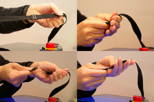 更には、ショルダーストラップには一定以上の負荷がかかると外れる安全機能を採用し、万が一、HT4P形やストラップ等が機械に巻き込まれた場合でも、外れて危険を回避するしくみが導入されている。