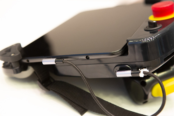 「セーフティコマンダ」は人間工学に基づいたグリップ構造とイネーブルスイッチの配置により、利き手を問わず、持ちやすさとタブレットの操作性を実現している。