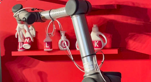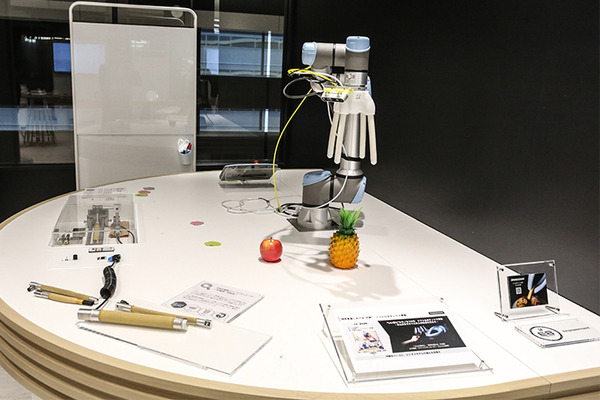 もうひとつのデモは、棚から指定の製品をピックアップして、箱に入れるというもので、物流現場等で注文内容に合わせて箱詰めするシーンに似たものだ。大型のEC物流倉庫やマテハン分野では最近、商品を棚ごとロボットが運んできて、パソコン画面で指定された商品を人間のスタッフがピックアップして発送向けの箱にまとめるという光景が現場で見られるようになったきた。それは前述のように搬送作業はロボットに適しているが、ピックアップに関してはロボットより人間が優れていることためだ。その部分、言わば最後に残されている自動化の壁「ピッキング作業」をソフトロボットで行うデモとなっていた。