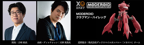 V-Sido開発者の吉崎航氏、イラストレーター・メカデザイナー業を中心に活動する天神英貴氏、グッドスマイルカンパニー、ジェンコがタッグを組み、レイバー実体化プロジェクトが進行してていることが発表された。「第一回 幕張国際レイバーショウ」では2月12日(日)、その第一弾として20cmサイズの電動クラブマンハイレッグが公開され、吉崎氏と天神氏のトークショーが開催される。