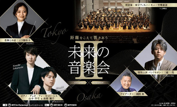NTTグループは2023年2月10日(金)、渋谷のBunkamura オーチャードホールにてコンサート「Innovation × Imagination 距離をこえて響きあう 未来の音楽会II」を開催した。このコンサートは世界で初めて4ヶ所の会場を繋いで実施された。東京(渋谷)、大阪(堂島)、神奈川(横須賀)、千葉(我孫子)を光通信で接続し、NTTが開発しているIOWN構想に基づく技術が導入され、時間のタイムラグがわずか1000分の20秒の中で、別々の場所でオーケストラの演奏、ピアノ・デュオ演奏、ピアノ・デュオとバンドネオン演奏などが実施された。