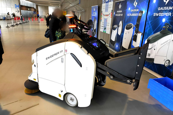 クリーンスタジオはGaussian Robotics 製のロボット3種類「SWEEPER 111」「SCRUBBER 50」「VACUUM 40」をデモ公開した。屋内と屋外の床面を自動走行で清掃するロボットで「SWEEPER 111」はブラシを使った掃き掃除、「SCRUBBER 50」はブラシとはけで床面を水洗浄と排水、「VACCUM 40」は吸引清掃を行うことができる。試合開催中、「VACUUM 40」が走行デモを実施、壁ぎわ40mmまでの清掃走行や、人やフェンスの回避など、安定感のある動きを披露した。