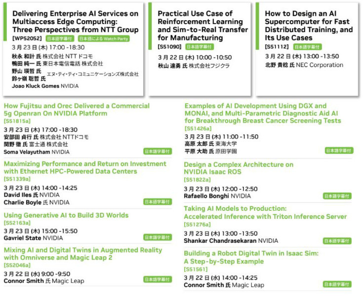 今回はGTC内で「Japan AI Day」がオンライン併催される。「Japan AI Day」とは、数多くのパートナー企業による先進事例や産学連携事例など、最新情報を一挙に紹介するイベント「NVIDIA AI DAYS」の日本版と言えるもの。日本市場向けに特化した内容で、日本企業やアカデミアによるAI最新技術やGPU活用のユースケース等に触れることができる貴重な機会となる。もちろん言語は日本語。