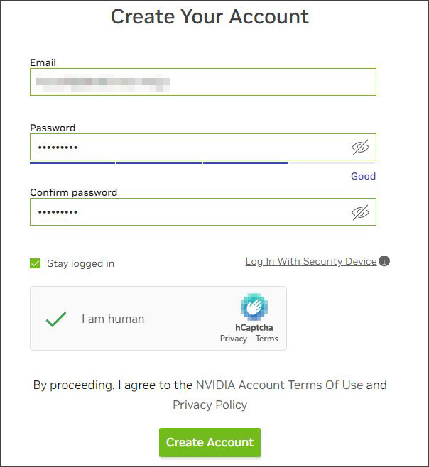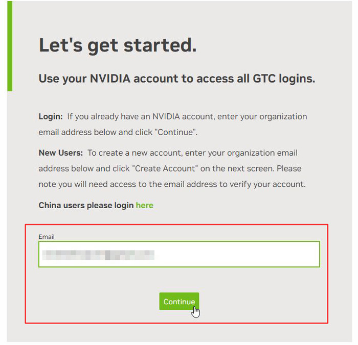 GTC登録前にアカウントを「NVIDIAアカウント」を作成する(既にNVIDIAアカウントに登録済みの読者は自身のメールアドレスを入力してログインする)。